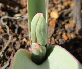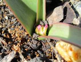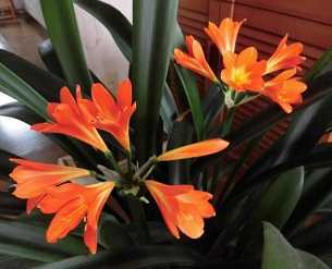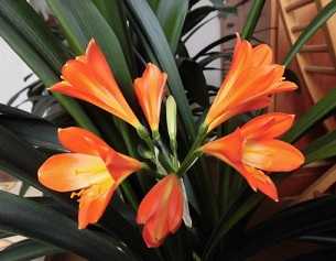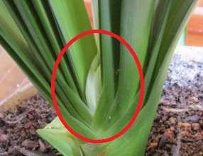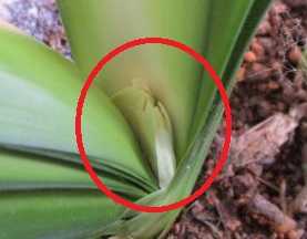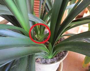 (君子蘭。2鉢のうち左の鉢の株に蕾が出てきた。)