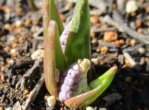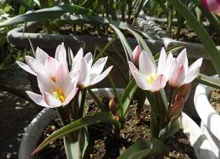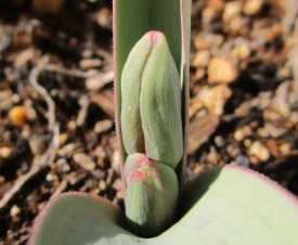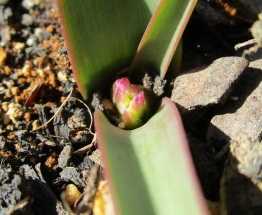 ミニチューリップ・ヒルデの蕾が出てきた。