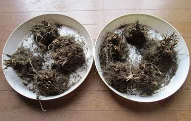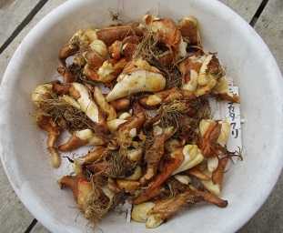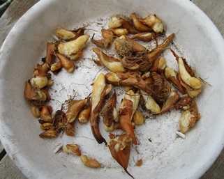 (植付け前の黄花カタクリの球根。5月に掘り上げたものである。)