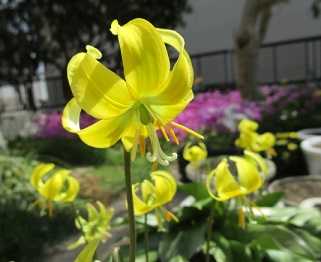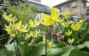 (ネリネ。2鉢のうち右手前の鉢に蕾が2本出てきた。)