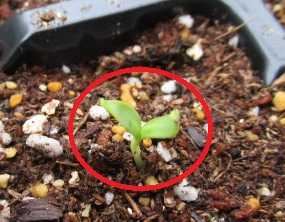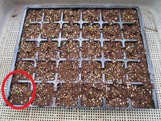双葉が開いているのは1本だけだが、他にも10本前後発芽しかかっている。