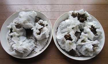 (事前準備として濡らしたキッチンペーパーに包んだ。)