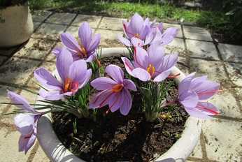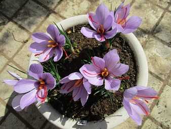サフランの2年目の球根は今までに開花したことが無いので地植えにして自然に任せて、毎年新しいのを5球買って鉢植えにしていたが、今年は何故かホームセンターに入荷してない。
