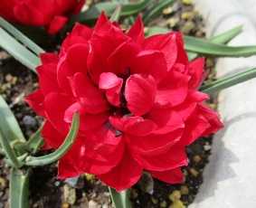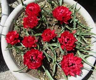 (ミニチューリップ・テタテタのプランター。20球植えてある。)
