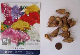 (フリージアの球根。6月に掘り上げたものであるが昨年からはだいぶ減った。)