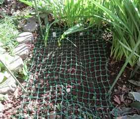 (土を被せてミュウの掘り上げ防止用のネットを張って、水やりをして作業終了。)