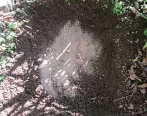 (昨年と同じ場所に穴掘りして油粕を散布。)