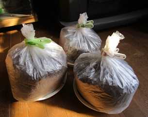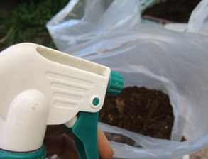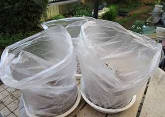 (乾燥防止のため球根を2枚重ねのポリ袋に培養土と一緒に収容して、)