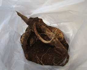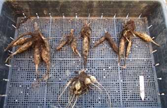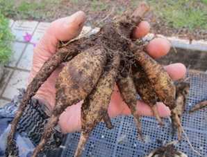(掘り上げた球根。近年では出来が一番悪いようだ。)