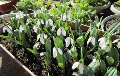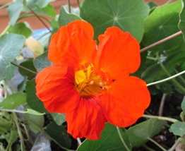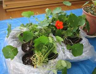 (ポット上げしていたこぼれ種ナスタチウム12株ほどを室内に入れた。)