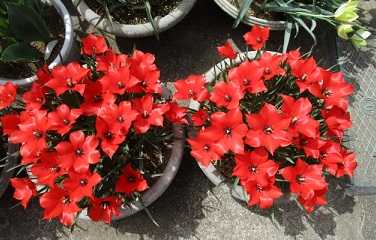 (ミニチューリップ・リニフォーリアのプランター。プランター2個に約30球ずつ計約60球を植えてある。)