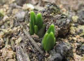 地植えクロッカスが発芽した。