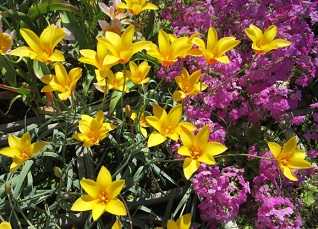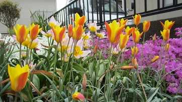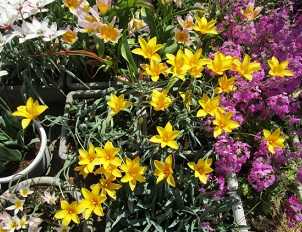 (チューリップ・クルシアナシンシアのプランター。プランター2個に16球ずつ計32球植えてある。)