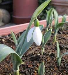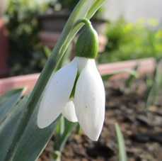 (昨日横を向いて開花したスノードロップは下を向いた。)