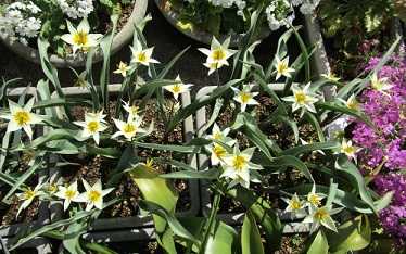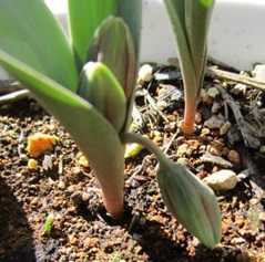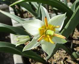 ミニチューリップ・トルケスタニカの蕾が出てきた。