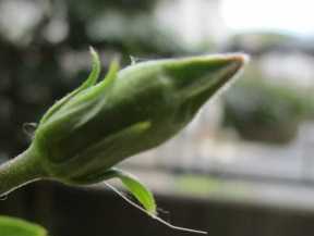 (ハイビスカスの蕾。開花までまだ時間がかかりそうだ。)