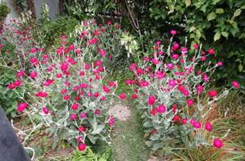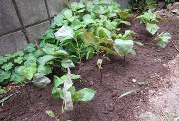 (ポット上げしていたこぼれ種のシソ16株をチューリップの跡地に定植した。)