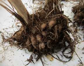 この球根は室内で陰干し保存して秋に再植付けする予定である。