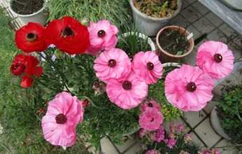 ラナンキュラスは以前からの白も8号鉢に一緒に定植したのだが、枯れてしまった。