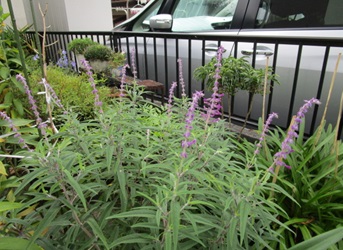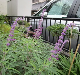 (アメジストセージ。9号鉢に植えてある。)
