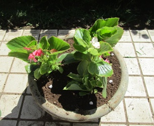 (ベゴニアを3株定植。)
