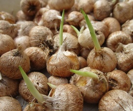 (スパラキシスの球根。6月に掘り上げたものである。)