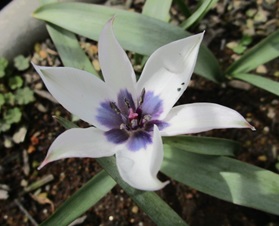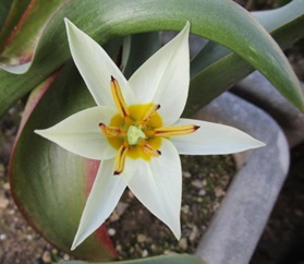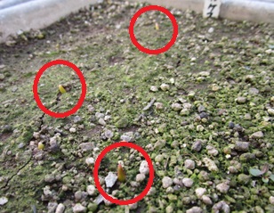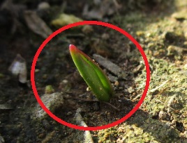 10月に球根を植えたミニチューリップ・アルバコエルレア・オクラータとトルケスタニカが発芽した。