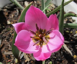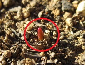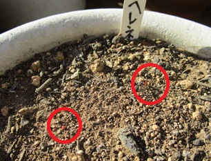10月に球根を植えたミニチューリップ・ヘレネが発芽した。