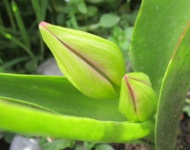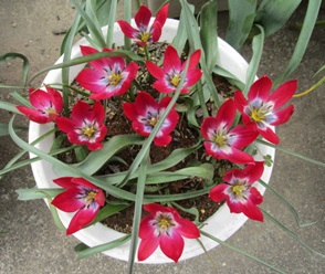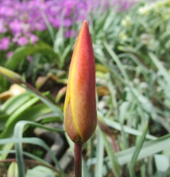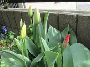 ミニチューリップ・タイニーティモの蕾が出てきた。