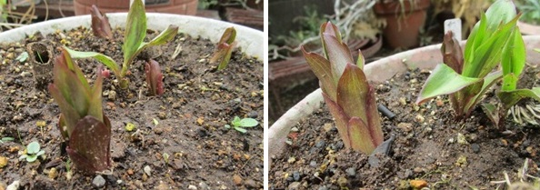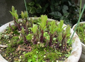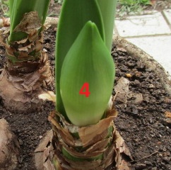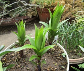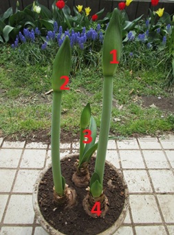 (今日はアマリリスの1鉢目を外に出した。蕾が4本ある。)