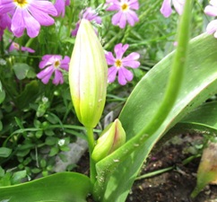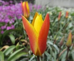 (チューリップ・クルシアナの蕾。開花宣言まであと一歩。)