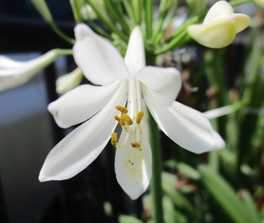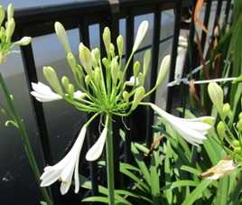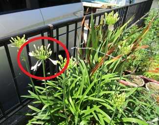 (アガパンサス。花穂が7本あるが全部白のようだ。)
