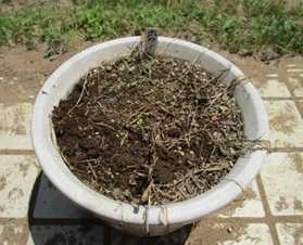 (掘り上げ前のホワイトマジックの鉢。7号鉢に30球植えてあった。)