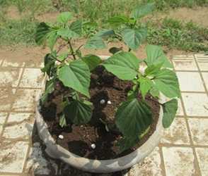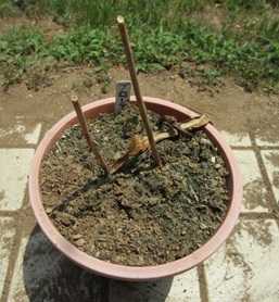 (掘り上げ前のルディの鉢。5号鉢に2球植えてあった。)