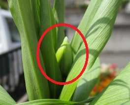 あずき色のグロリオサの蕾が出てきた。