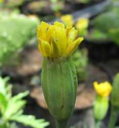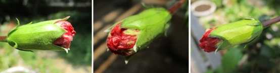 (ハイビスカスの蕾。花びらが見えてきた。)