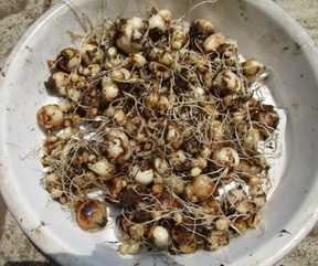 (植替え前の球根。右の5号鉢に植えてあった。)
