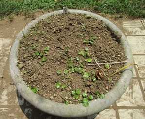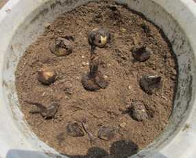 当初予定になかったが鉢が倒れて球根が散らばっていたので急遽植替えをすることにしたものである。