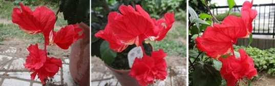(ハイビスカス4~6号が咲いた。10日ぶりである。)