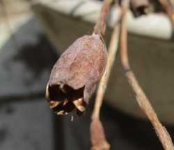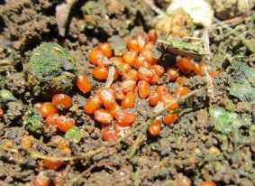 (さやから落ちたこぼれ種。回収はほぼ困難でもあり自然にまかせる。)