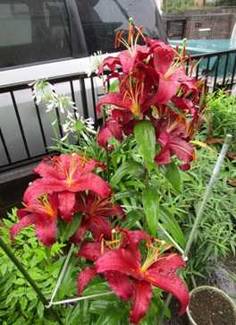 (オリエンタルリリー・マンボ。朝にはカサブランカと共に風で倒れていた。)