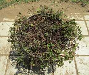(切り戻し後。鉢の縁近くまで軽く切り戻した。)