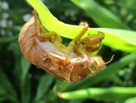 (セミの抜け殻がミョウガの葉にくっついていたが鳴き声はまだ聞いてない。)