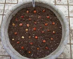 八重コルチカムも以前はほとんど9月に発芽していたが、ここ3年はステルンベルギアと同じく10月になってからであり、これも残暑の影響かも知れない。