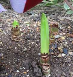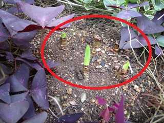 (黄色のリコリスが発芽していた。)