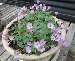 (オキザリス・ヒルタ。8号鉢に植えてある。)