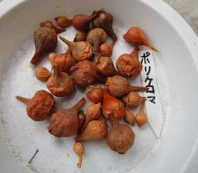 (ポリケロマの球根。5月に掘り上げたものでちょうど30球である。)