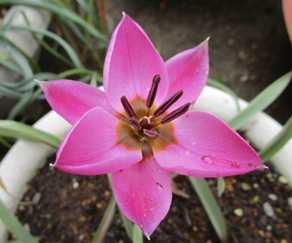 ミニチューリップ・ヘレネの球根を植え付けた。