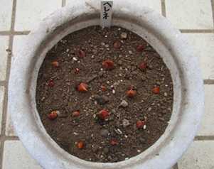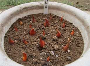 (7号鉢に小さいのを含めて全19球を植付け。昨年は15球だった。)