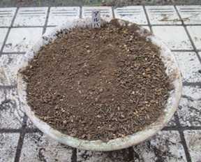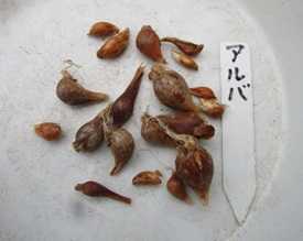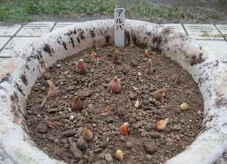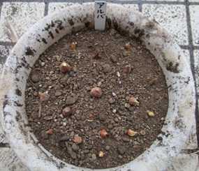 (7号鉢に小さいのを含めて18球全部植付け。)